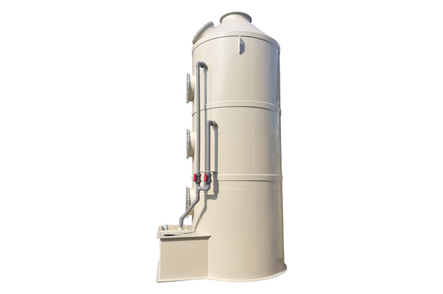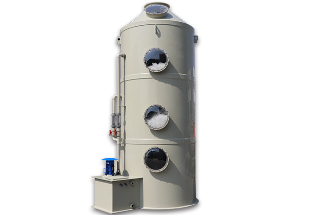 喷淋塔的结构组成:酸碱废气塔分单塔体和双塔体以及立式喷淋塔与卧式喷淋塔。用法兰分段连接而成。具体由贮液箱、塔体、进风段、喷淋层、填料层、旋流除雾层、出风锥帽、观检孔等组成。